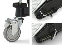 Большие транспортировочные колёса оснащены механизмом блокировки в одно касание, который способствует быстрой и надёжной расстановке инструментов. В дополнение к тормозным механизмам больших колёс, к педальному колёсику добавлен дополнительный тормоз. Исполнитель может задействовать дополнительный тормоз, чтобы надёжно зафиксировать колёсико и предотвратить самопроизвольное движение инструмента.