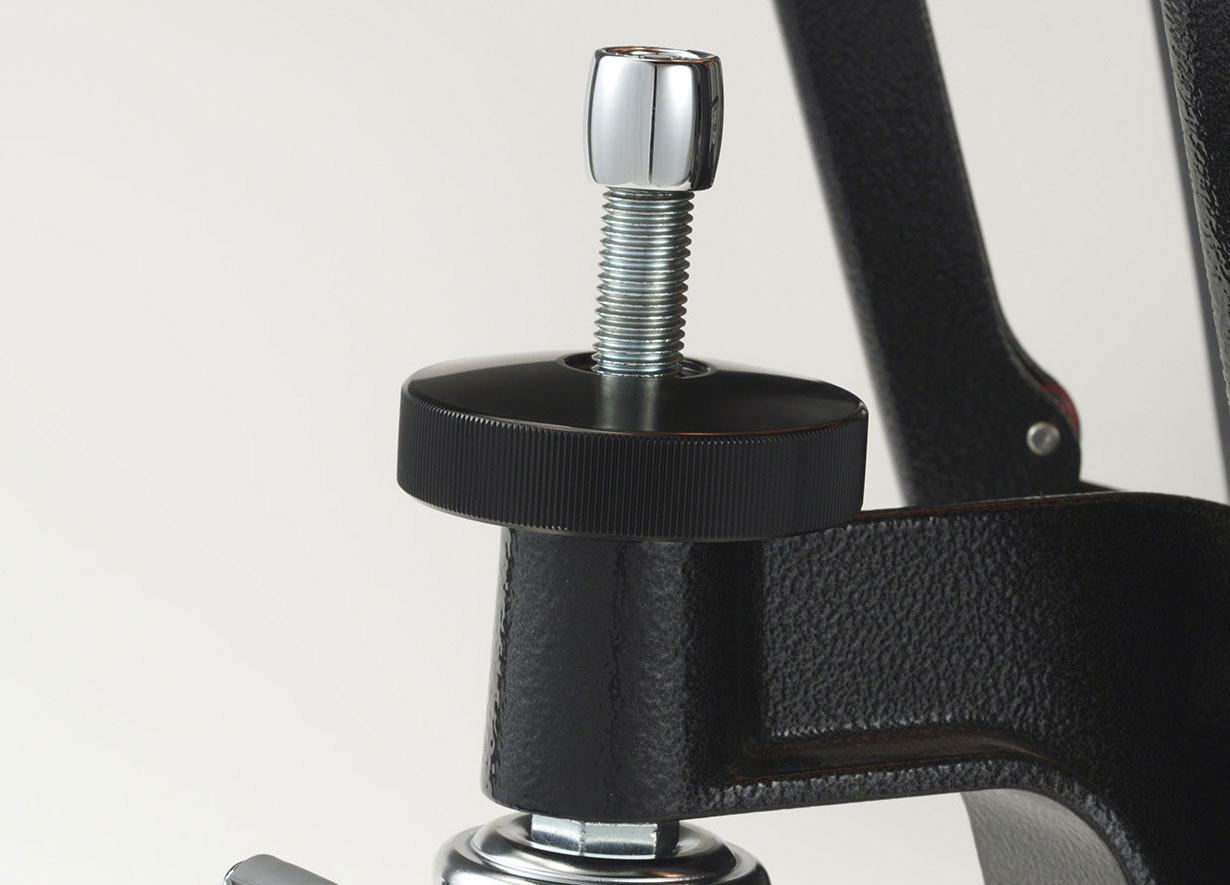 Натяжение пружины педали и натяжение пластика литавры точно сбалансированы, поэтому высота звука остается неизменной, даже если исполнитель убирает ногу с педали. Изменение высоты звука во всем диапазоне происходит плавно и без усилий. Нам удалось получить очень широкий диапазон – приблизительно малая секста на дюйм.