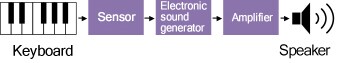 В цифровом фортепиано нет струн. Каждая клавиша – это что-то вроде тумблера, который отвечает за создание определенного звука. Электронный генератор производит звуки, которые усиливаются с помощью динамика.