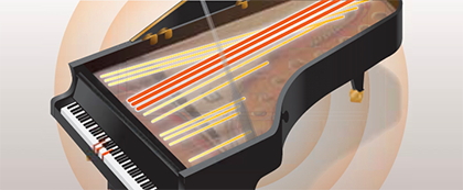 В концертном рояле струны и звуки резонируют по всему его корпусу, вызывая насыщенную реверберацию, которая словно обволакивает слушателя звуком. Вибрируют не только те струны, на которых вы играете, но и другие вместе с ними. Это одна из причин, по которой фортепиано звучит так многогранно и насыщенно.