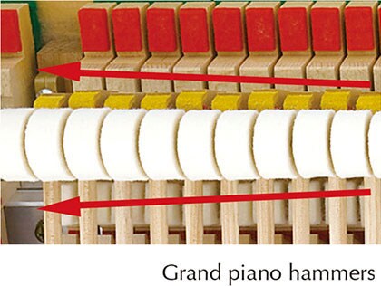 Мы также использовали механизм, имитирующий подъем молоточков, который используется в конструкции рояля. Исполнитель ощущает возврат молоточка после нажатия клавиши. Таким образом, GrandTouch имитирует эффект плавного отпускания клавиши с последующей ее остановкой, характерный для рояля.