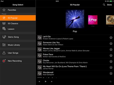 Smart Pianist может воспроизводить как предустановленные, так и коммерчески доступные композиции. С его помощью вы сможете как просто прослушивать записи, так и играть одновременно с ними. Это приложение также содержит партитуры для сотен встроенных MIDI-композиций. Кроме того, на веб-сайте Yamaha MusicSoft можно приобрести другие композиции.