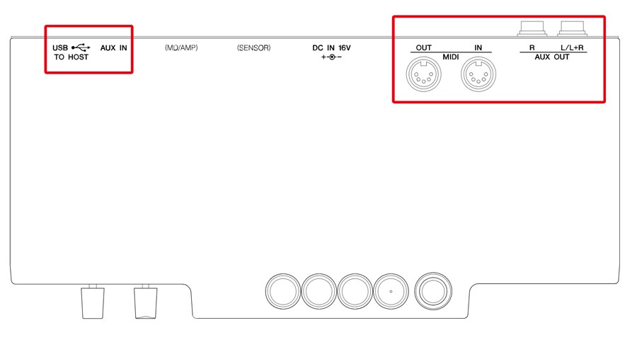 С помощью разъема USB TO HOST можно подключить инструмент к компьютеру или мобильному устройству и записывать высококачественное аудио без необходимости в использовании дополнительного интерфейса, while AUX OUT allows sound to be output to a variety of external devices (e.g. stereo components, IC recorders, speakers with built-in amplifiers, stereo systems), and AUX IN allows listening to sound from external devices (sound source modules and music players). MIDI OUTPUT transmits performance information to external devices such as synthesizers. MIDI IN allows the instrument to receive and playback performance information from sequencers using the tone generator of the SILENT Piano™ SH2 type.