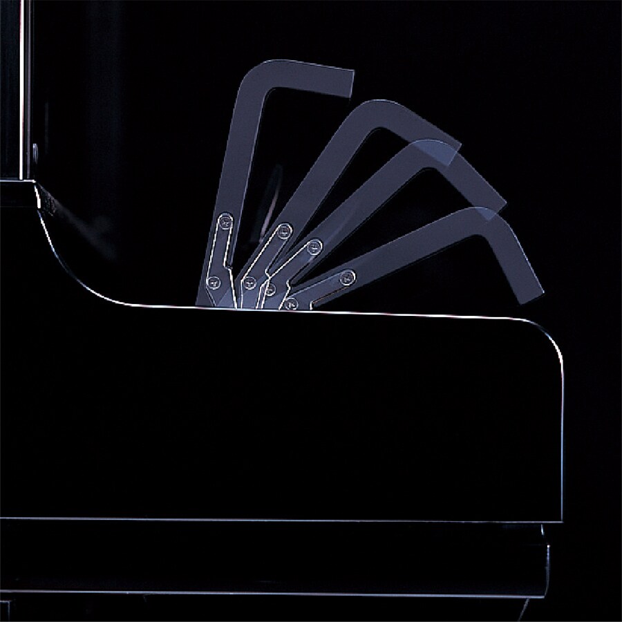 Для дополнительного удобства и защиты рук исполнителя эти модели оснащены механизмом плавного закрытия крышки клавиатуры. Кроме того, все механизмы, будь то петли крышки или рычаги пюпитра, размещены позади крышки клавиатуры и скрыты от глаз, что делает дизайн более стильным и лаконичным. Отделка из полированного черного дерева у моделей YUS1 и YUS3, а также накладка из искусственной кожи на пюпитре, не позволяющая нотам скользить, придают внешнему виду солидность и значительность. Крышка клавиатуры у этих пианино также снабжена стандартным замком, чтобы вы всегда могли защитить свой ценный инструмент.