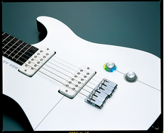 Гитара оснащена регулятором общей громкости и трехпозиционным переключателем звукоснимателей, в виде вращающейся ручки, снабженной LED-светодиодами, цвет которых обозначает использование одного из двух, либо обоих звукоснимателей.
